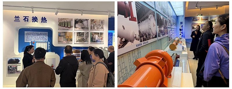 作为我国能源装备制造领域的“国家队”,兰石集团始建于1953年,累计创造113项“中国第一”,素有“石化机械脊梁”的美誉。活动首站,党员教师们走进兰石展馆,通过历史影像资料、实物装备模型及互动式展陈,系统了解企业发展历程——从传统炼油化工装备研发制造,到如今向“核氢光储”新能源装备领域战略转型的全过程,直观感受行业发展脉搏与企业创新实力。
