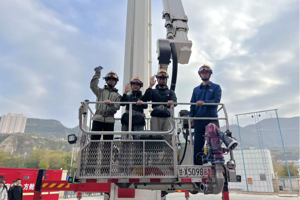 消防车辆展示区前,云梯消防车、水罐消防车等各类特种消防车辆一字排开,犹如整装待发的“钢铁战士”。消防员结合车辆性能,详细讲解了各类消防车辆的构造、功能及在火灾救援中的应用场景。当90米高的消防云梯缓缓升起,师生们纷纷发出赞叹。在确保安全的前提下,学生们分组登上云梯车,体验高空视角下的救援场景,真切感受了消防装备的强大威力,进一步增强了对消防救援工作的敬畏之心。