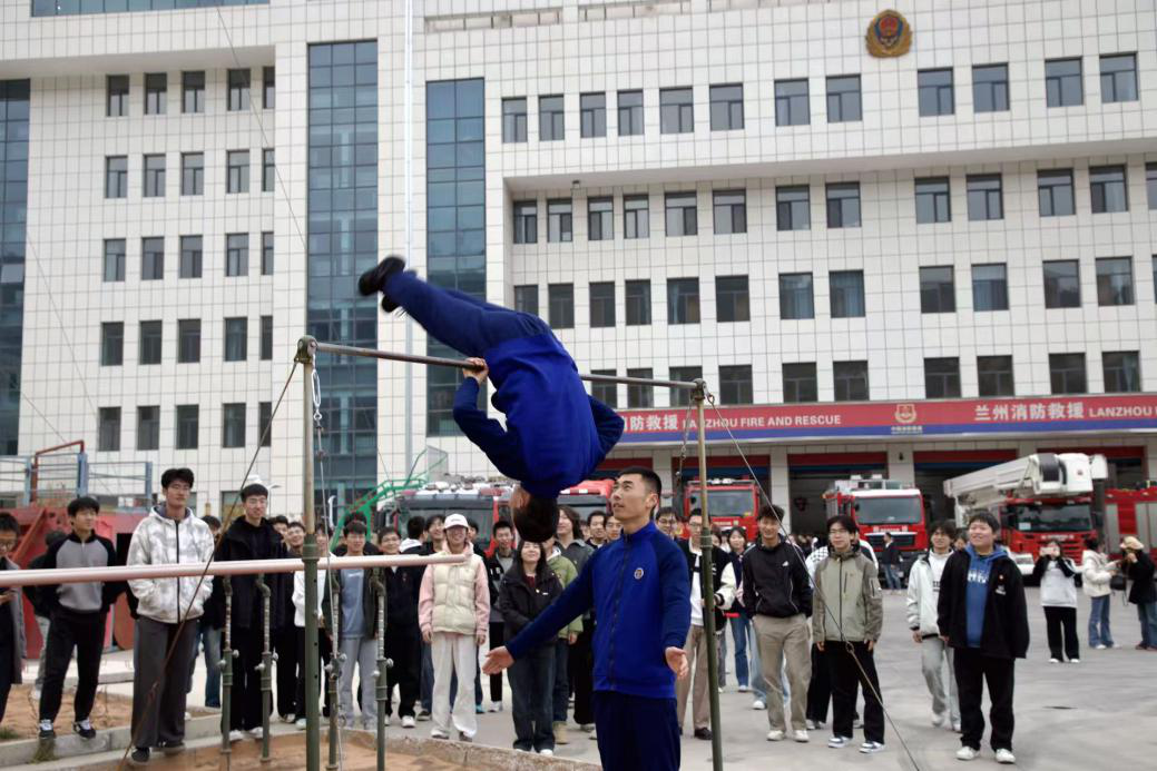 活动最后,一场别开生面的体能比武热闹上演。师生与消防员同台竞技,开展了俯卧撑、仰卧起坐、负重跑等项目比拼。赛场上,大家奋勇争先、全力以赴,既展现了师生们朝气蓬勃、积极向上的精神风貌,也让大家深刻认识到过硬的体能是开展消防救援工作的基础。消防员们专业的技能和顽强的毅力,赢得了师生的阵阵掌声。