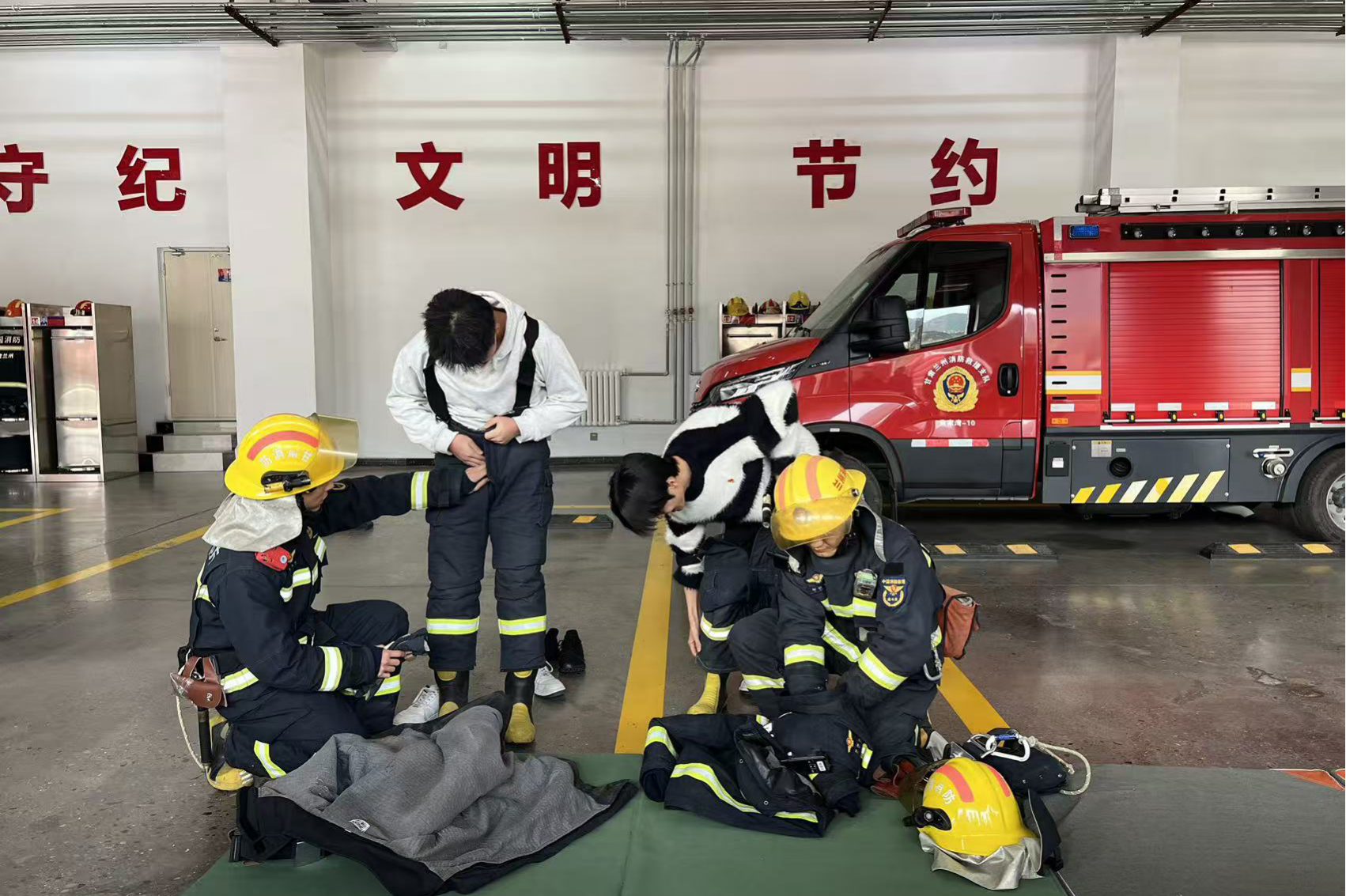 走进消防救援站,整洁划一的内务建设首先映入眼帘。在消防员的带领下,师生们参观了宿舍、荣誉室等场所。棱角分明的被子、整齐摆放的生活用品、熠熠生辉的荣誉勋章,不仅展现了消防救援队伍严明的纪律作风和过硬的综合素质,更让师生们感受到了“火焰蓝”背后的坚守与担当。