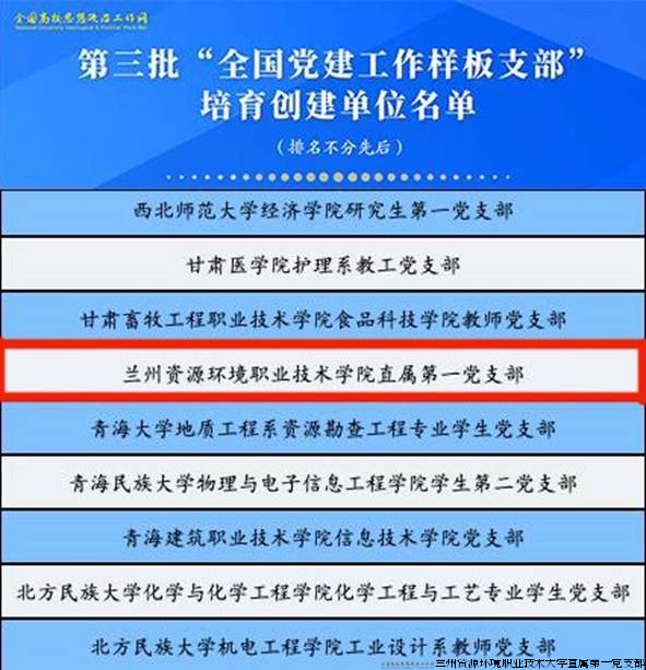 兰州资源环境职业技术大学办公室党支部是全省高校“双带头人”教师党支部书记“强国行”专项行动团队,是全国第三批对标争先“样板党支部”和省级对标争先首批“样板党支部”。党支部由办公室行政教师党员组成,现有党员8人,其中教授1人、副教授4人,博士1人。