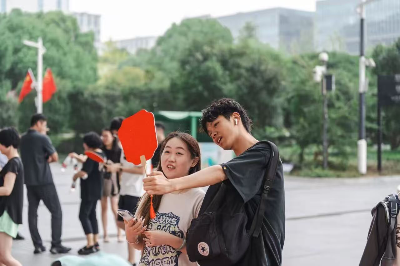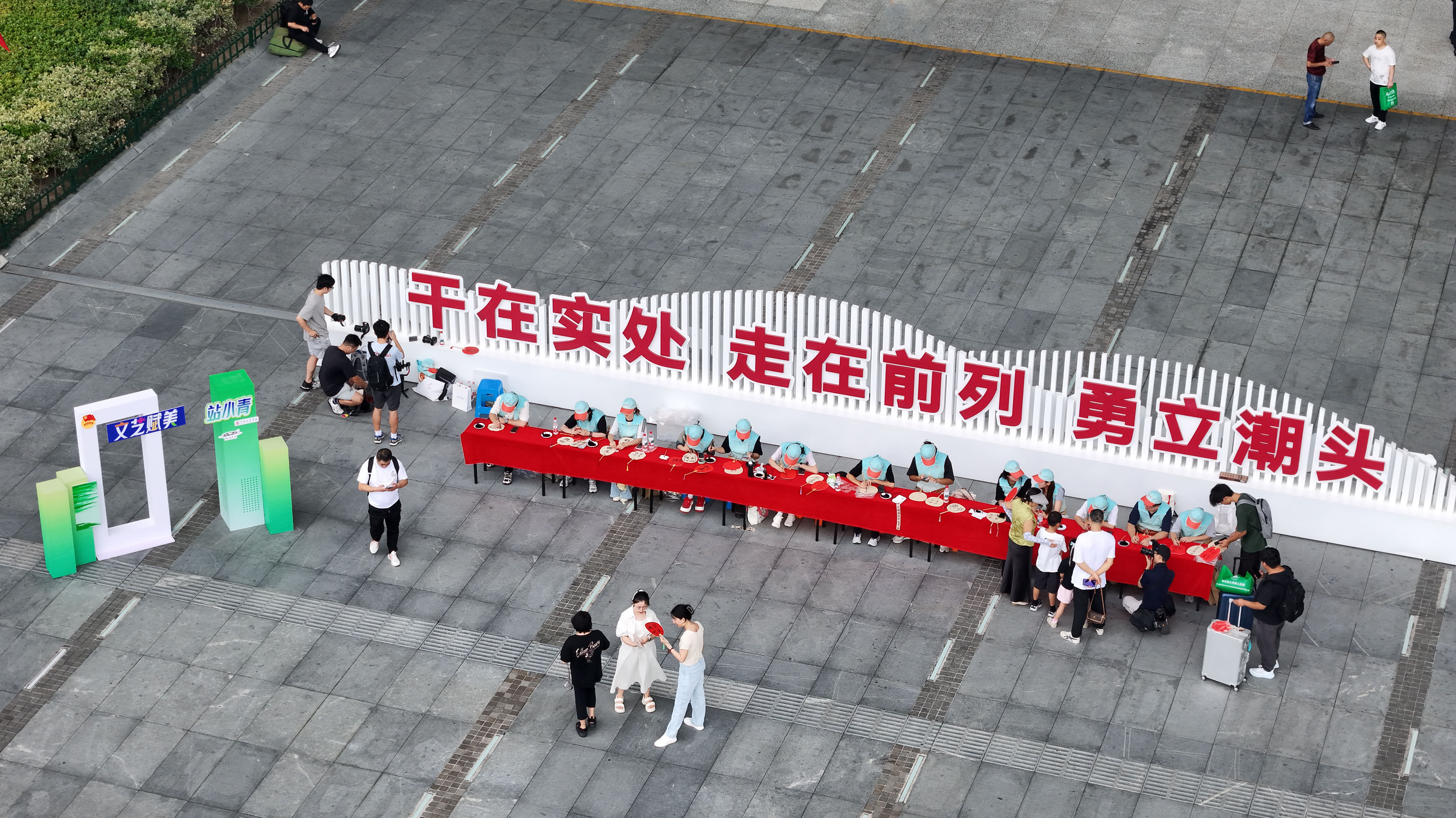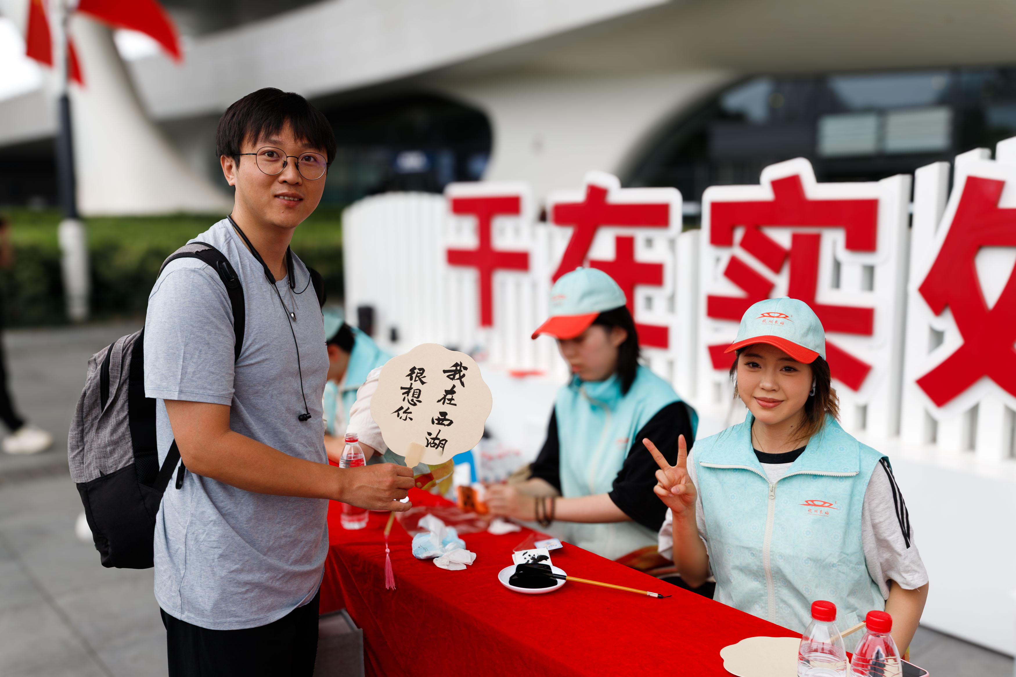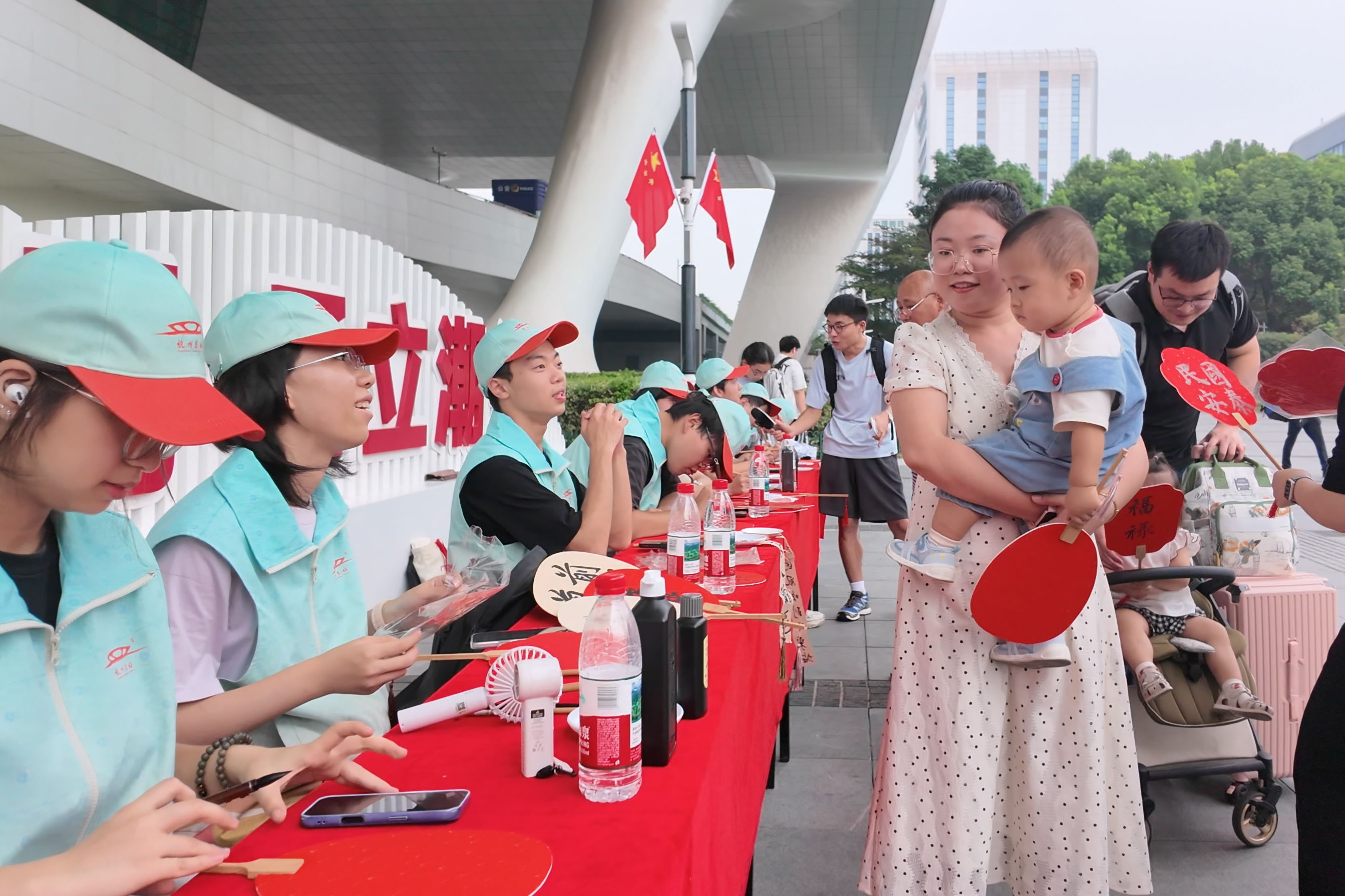 9月30日,由共青团上城区委、杭州东站枢纽管委会联合中国美术学院书法学院共同发起的“家国同心·月满华诞”——上城区“站小青”青年志愿赋美行动,在杭州东站东广场温暖启幕。
