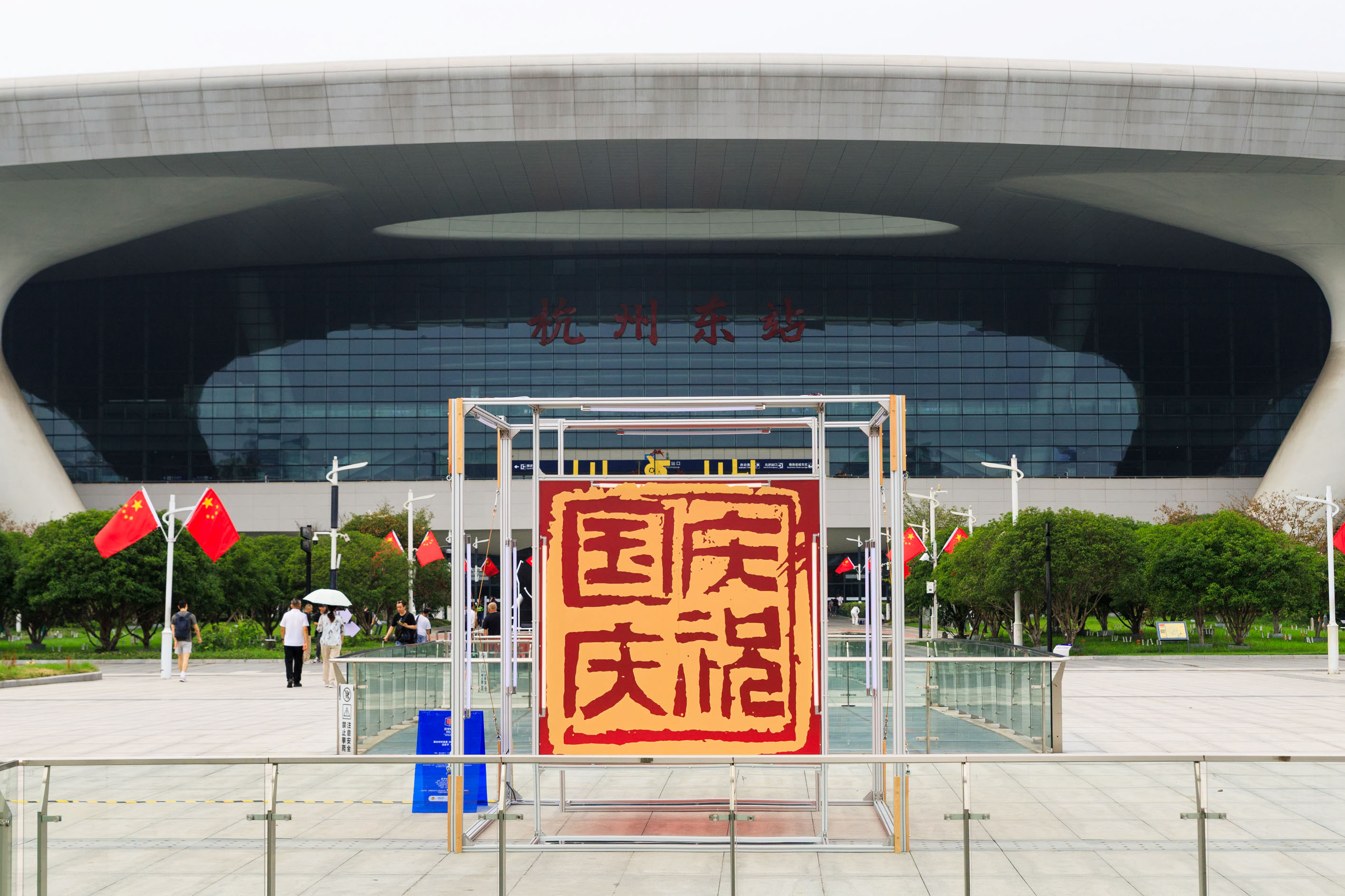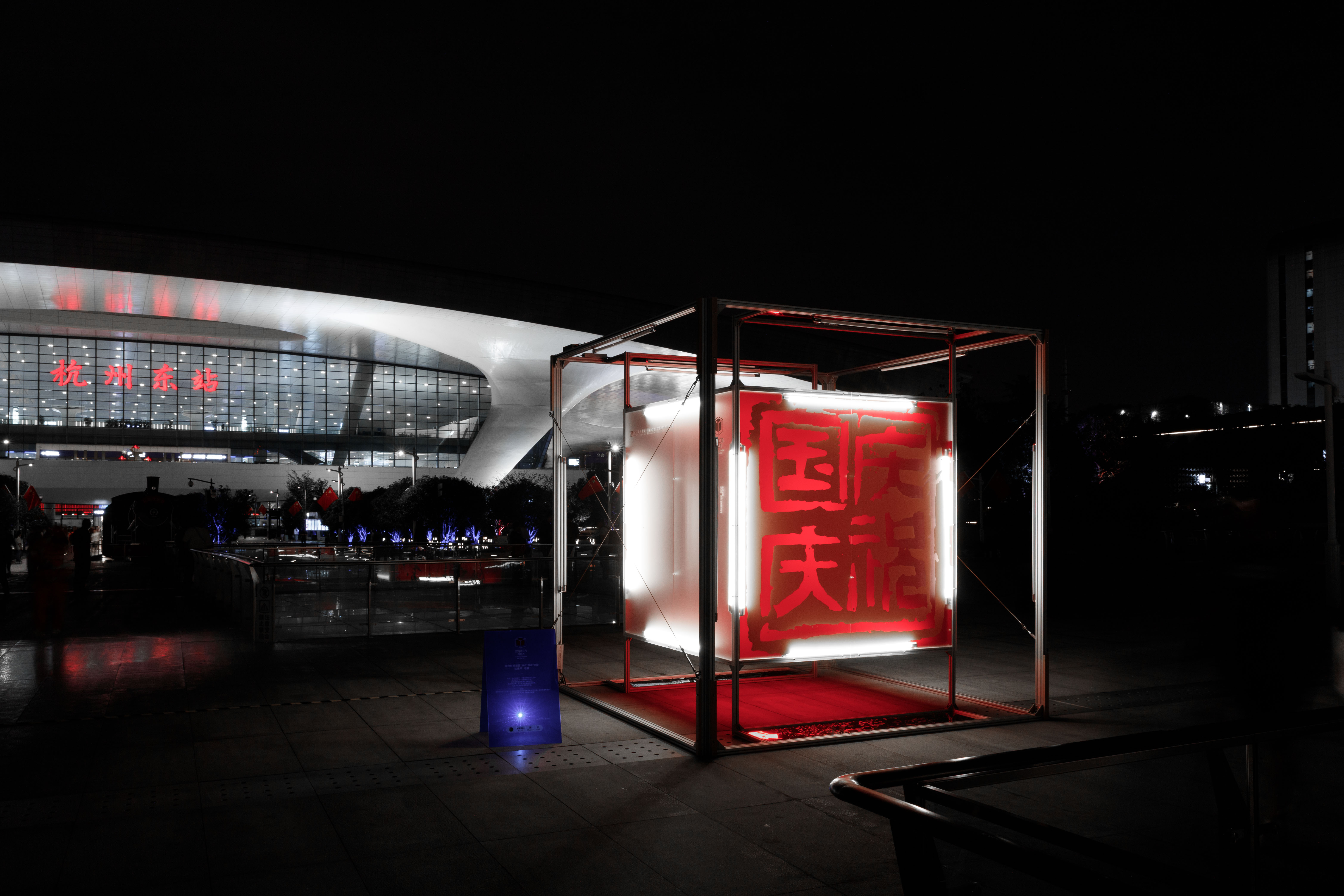 “汉字红方”点亮杭州东站,中国书法在地传播计划再启程