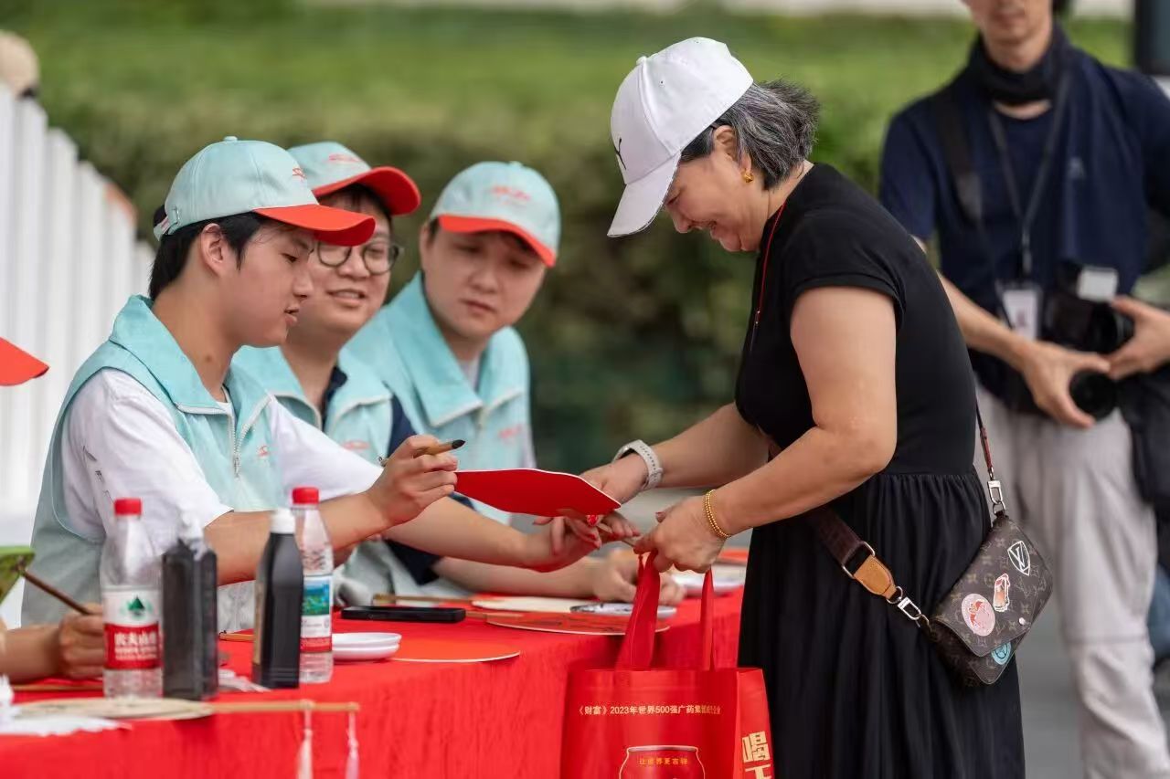 活动当天,书法学院的青年学子们一早就布置好创作台,研墨展扇,等待为往来旅客送上特别的节日祝福。他们现场挥毫,即兴创作,将真挚的祝福凝于笔端。一行行诗句、一幅幅图画在团扇上渐次绽放,往来旅客惊喜地获得了这份亲手书写绘制的独特礼物,让匆忙的旅途满载东方美意与温情。