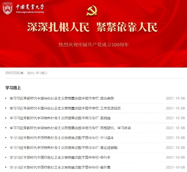 本网讯 时下,利用互联网学习习近平新时代中国特色社会主义思想成为阅读新风尚,国内多家网络传播平台上线“新时代 新经典——学习习近平新时代中国特色社会主义思想重点数字图书专栏”。为更好满足广大师生群众对学习习近平新时代中国特色社会主义思想图书的阅读需求,我校党史学习教育专题网站已全部转载,着力通过互联网推动习近平新时代中国特色社会主义思想深入人心、落地生根,帮助广大师生群众实现理论学习有收获、思想政治受洗礼。