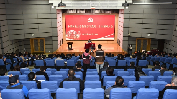 中国农大新闻网讯 10月24日上午,学校召开传达学习党的二十大精神大会。党委书记姜沛民向干部师生传达党的二十大精神。校长孙其信主持会议。校领导张东军、钱学军、辛贤、李培景、单际国、林万龙、田见晖、王勇,党委常委杨志、赵竹村,以及学校党委委员、纪委委员等在食品报告厅主会场出席会议。