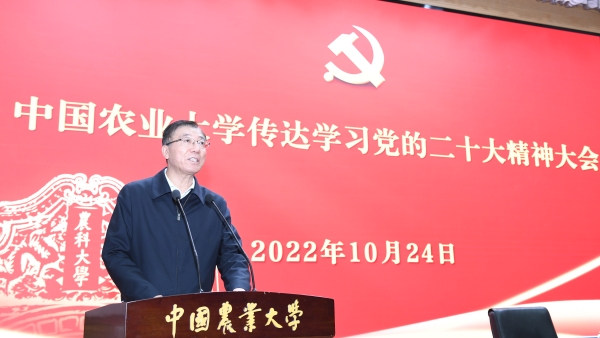 孙其信指出,党的二十大是在全党全国各族人民迈上全面建设社会主义现代化国家新征程、向第二个百年奋斗目标进军的关键时刻召开的一次十分重要的会议。二十大刚刚闭幕,学校第一时间向全校干部师生传达党的二十大精神,在全校迅速掀起学习热潮。要结合学校的实际,把学习宣传好党的二十大精神作为全校当前最重要的政治任务加以落实好,在学中干、干中学,以更加饱满的精神状态全身心投入到学校事业高质量发展中,以扎实的工作举措,加快推进各项工作,攻坚克难、砥砺奋进,为全面建设社会主义现代化国家、全面推进中华民族伟大复兴,作出新时代新征程上中国农业大学应有的贡献!