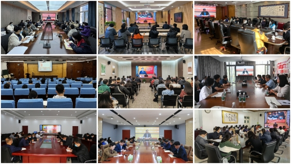 学校管理服务机构副处级以上干部,党委理论学习宣讲团骨干讲师等在主会场参加会议。学校各二级党组织在全校设26个分会场,各学院党政班子成员、二级党组织委员会委员、党支部书记、师生代表等在分会场参加会议。
