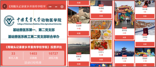 为献礼学校120周年华诞,营造浓厚的校庆氛围,基础研究生第一、二党支部联合基础教工第二党支部,面向全体党员征集“用镜头记录家乡,宣传学校辉煌成就”摄影作品,鼓励大家通过拍摄照片和视频等方式,记录家乡的风土人情、地标建筑、传统习俗,并结合我校120年的辉煌历史与卓越成就进行宣传。活动一经发布就得到了广泛响应,师生党员积极参与,利用镜头将各地风光与我校的历史成就创意结合,拍摄出了许多富有创意和深刻内涵的作品,不仅加深了大家对家乡的情感,更增强了对学校的认同感和集体荣誉感。
