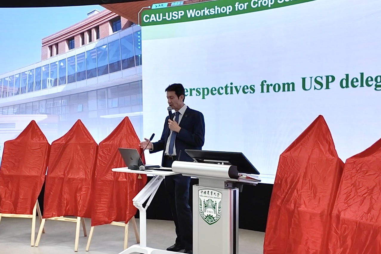 杜太生对圣保罗大学教授代表团的到访表示热烈欢迎。他指出,习近平主席在访问巴西期间,就深化中巴人文交流合作提出重要倡议,强调要加强文化、教育、青年等领域人文交流,夯实中巴命运共同体的民意基础。杜太生强调,近年来学校与巴西圣保罗大学在人才联合培养、科研协同创新等领域的合作取得了显著进展。2024年访问圣保罗大学期间,双方就推进合作办学发展、加强科研合作、扩大师生学术交流达成重要共识。此次圣保罗大学6位教授来访并参与学术交流周活动,是落实合作共识,推进教育科技协同发展的务实举措。值此中国农业大学120 周年校庆之际,两校应秉持“志合者,不以山海为远”的精神,以学术互鉴、科技创新和人才培养为纽带,共同书写中巴农业合作新篇章,为全球农业可持续发展贡献智慧与力量。