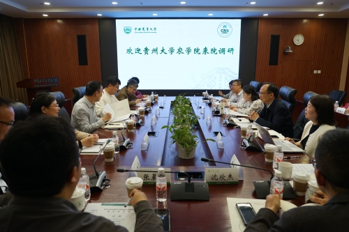4月11日上午,贵州大学农学院一行来农学院调研。贵州大学农学院党委书记冉龙彪,副院长(主持工作)张万萍,农学院副院长曾昭海,副院长董朝斌出席会议。双方以“世界一流学科引领、创新人才团队支撑”为题展开深入交流。