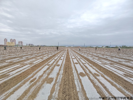 作物化控研究中心研究生第二党支部联合新疆农垦科学院棉花研究所党支部,在新疆棉花试验基地开展“校院协同抢农时”春耕播种党日活动。10余名党员顶着频发风沙和昼夜温差,全程参与机械化铺膜、试验田划线分区和精准播种作业。科研团队使用铺膜机高效完成100亩试验田的覆膜工作,并严格按照试验设计要求进行播种,确保10个试验区的处理分布科学合理。同时,党员们同步完成土壤墒情取样工作,为后续棉花品种优化研究提供可靠数据支撑。