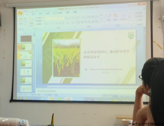 博士生党员刘硕向农学院师生介绍了田间保护性耕作的最新进展