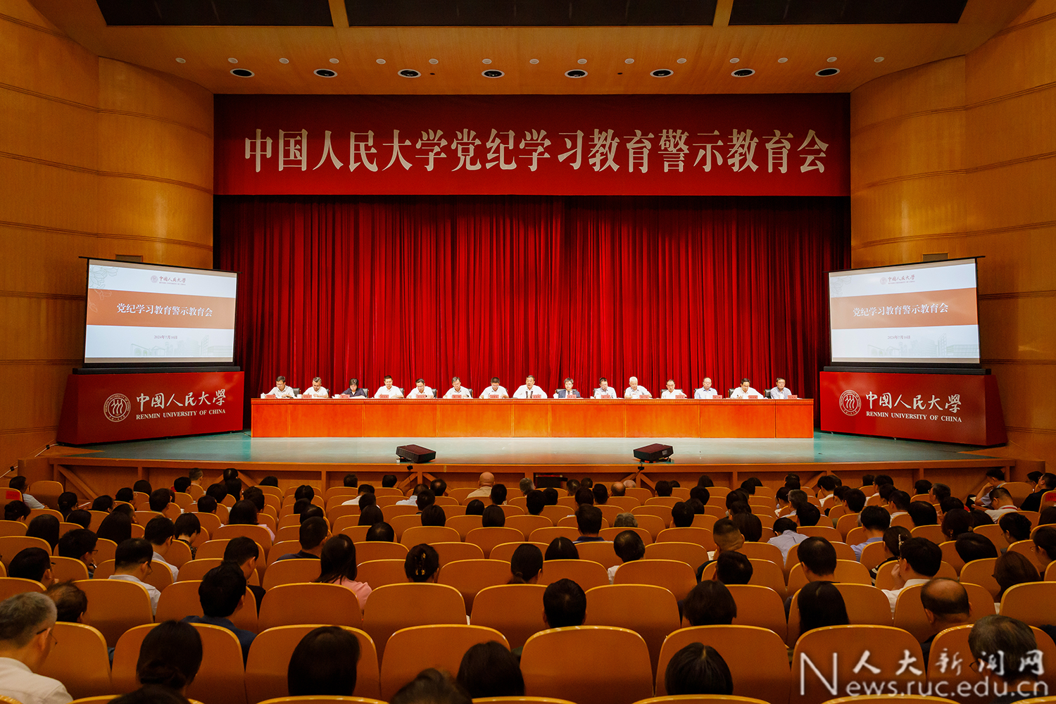 7月16日,中国人民大学党纪学习教育警示教育会召开。中国人民大学党委书记张东刚作党纪学习教育警示教育报告。校长、党委副书记林尚立主持会议。中央纪委国家监委第二监督检查室、中央纪委国家监委驻教育部纪检监察组、北京市纪委市监委等上级纪检监察机关相关负责同志和教育部直属高校党建工作联络员、北京大学党委原副书记杨河到会指导。学校党委常委朱信凯、吴付来、郑水泉、王轶、王易、冯仕政、郑新业、支晓强、青格勒图参加会议。