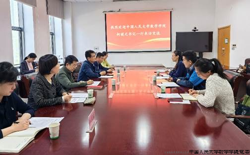 为深化校所协同育人机制,推动数学学科高质量发展,中国人民大学数学学院党委书记柯媛元、党委副书记沈健率队于5月6日赴中国科学院数学与系统科学研究院系统科学研究所开展调研交流。系统科学研究所所长李洪波、副所长李启寨、所长助理赵文虓、数学机械化重点实验室主任支丽红、管理决策与信息系统研究室主任刘秀丽、系统所办公室主任牛园园等出席调研座谈会。