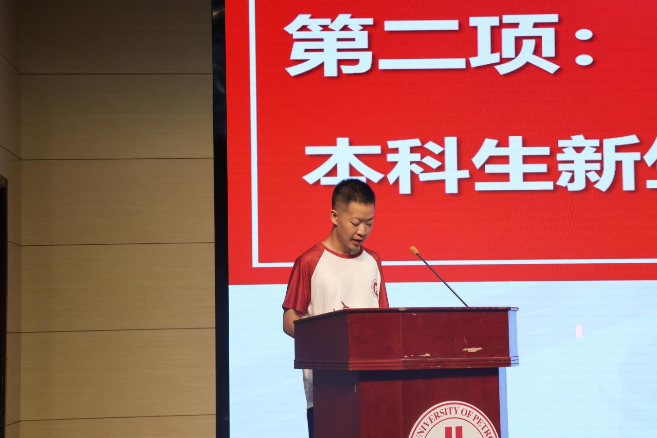 2025级本科新生张淞晨作为新生代表发言。他从自己与石油的不解之缘讲起,表示自己作为一名光荣的中石大人,将做到快速适应、勤学笃行、胸怀家国,在专业学习中锤炼本领,在实践探索中增长才干,学有所成、不负韶华。