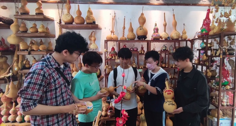 “如今科技发展迅速,大机器生产代替了人工生产,然而两位文化传承人坚守本心,坚持用手工制作,怀着一颗敬畏的心去对待传统文化,让非遗文化得到传承。今天的拜访,不仅使我了解了葫芦雕刻文化的魅力,更让我坚定了保护非遗文化的决心。”调研队队长张欢对傅文静和傅文贤说。离别之际,两位文化传承人向调研队赠送了葫芦纪念品,以此来激励同学们用行动来保护传统文化。