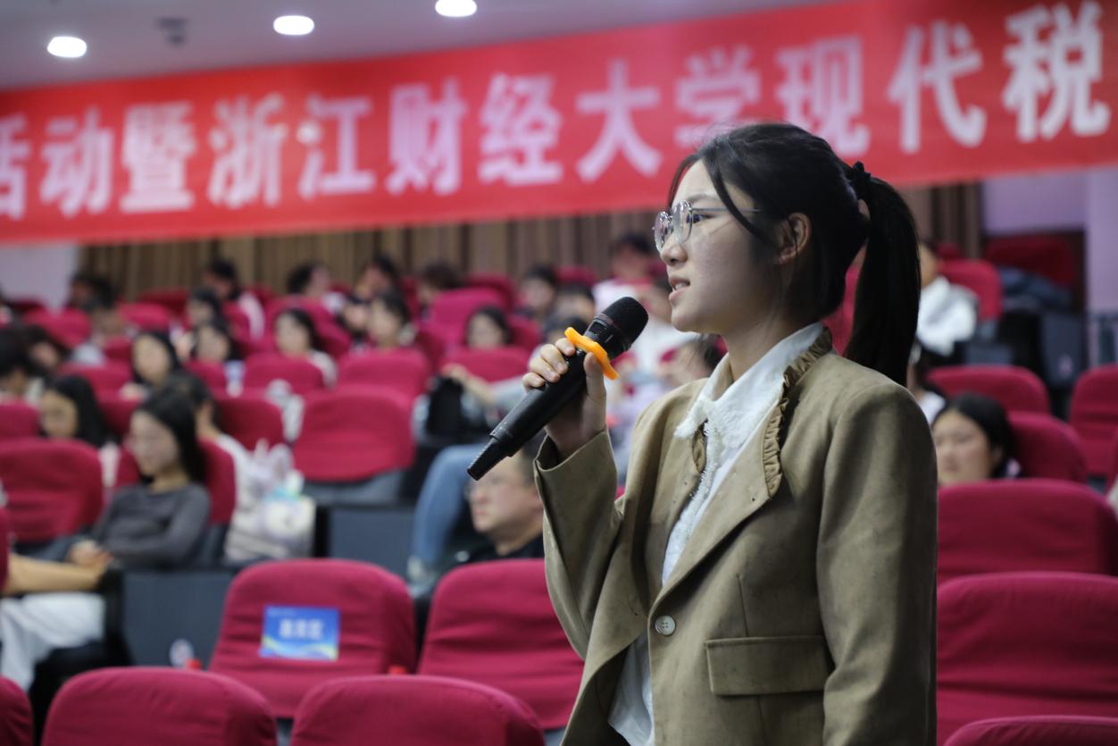 在互动提问环节,来自浙江财经大学的两名学生代表分别就“大学生未来就业应该具备哪些能力”与“什么税种适合作为地方税的主体税种”两个问题对在座嘉宾进行了请教,嘉宾对相应问题分别做出了详细回答。