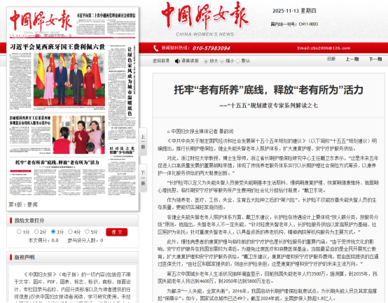 托牢“老有所养”底线,释放“老有所为”活力——“十五五”规划建议专家系列解读之七https://paper.cnwomen.com.cn/zgfnb/html/2025-11/13/content_1_11802.htm