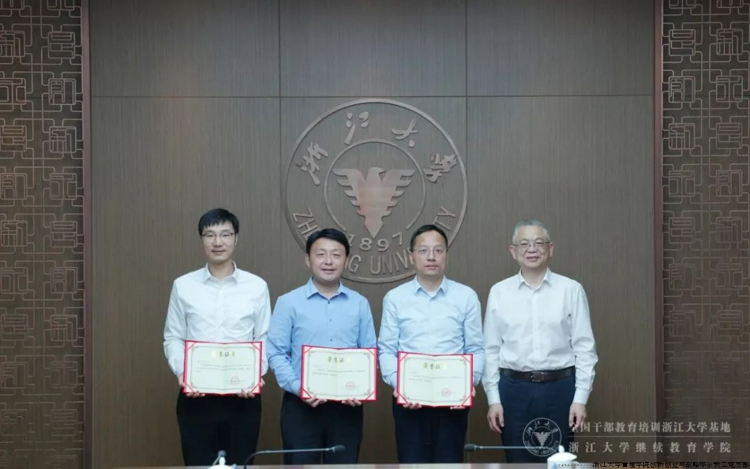 近日,浙江大学 2024 年全国干部教育培训好课程总结表彰会顺利举行。,浙江大学党委副书记傅强出席会议并颁发荣誉证书,全国干部教育培训浙江大学基地常务副主任、浙江大学继续教育学院院长胡炜宣读全国干部教育培训好课程获奖名单,浙江大学继续教育学院党委书记、全国干部教育培训浙江大学基地副主任王志强主持会议。