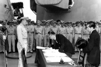 1945年9月2日日本代表在投降书上签字。图源抗日战争纪念网