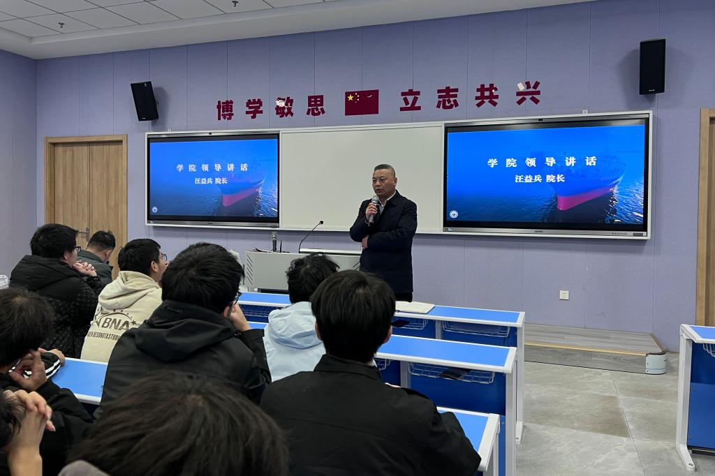 院长汪益兵教授的讲话将讲座推向高潮。他高度肯定了航海技术专业在“双高计划”建设中取得的成绩。他指出,三副证书是航海学子踏入行业的重要凭证,更是专业技能与素养的体现。他强调,同学们要以此次讲座为契机,树立远大理想,以优秀毕业生为榜样,在航海领域发光发热,为学校争光,为行业发展贡献力量。