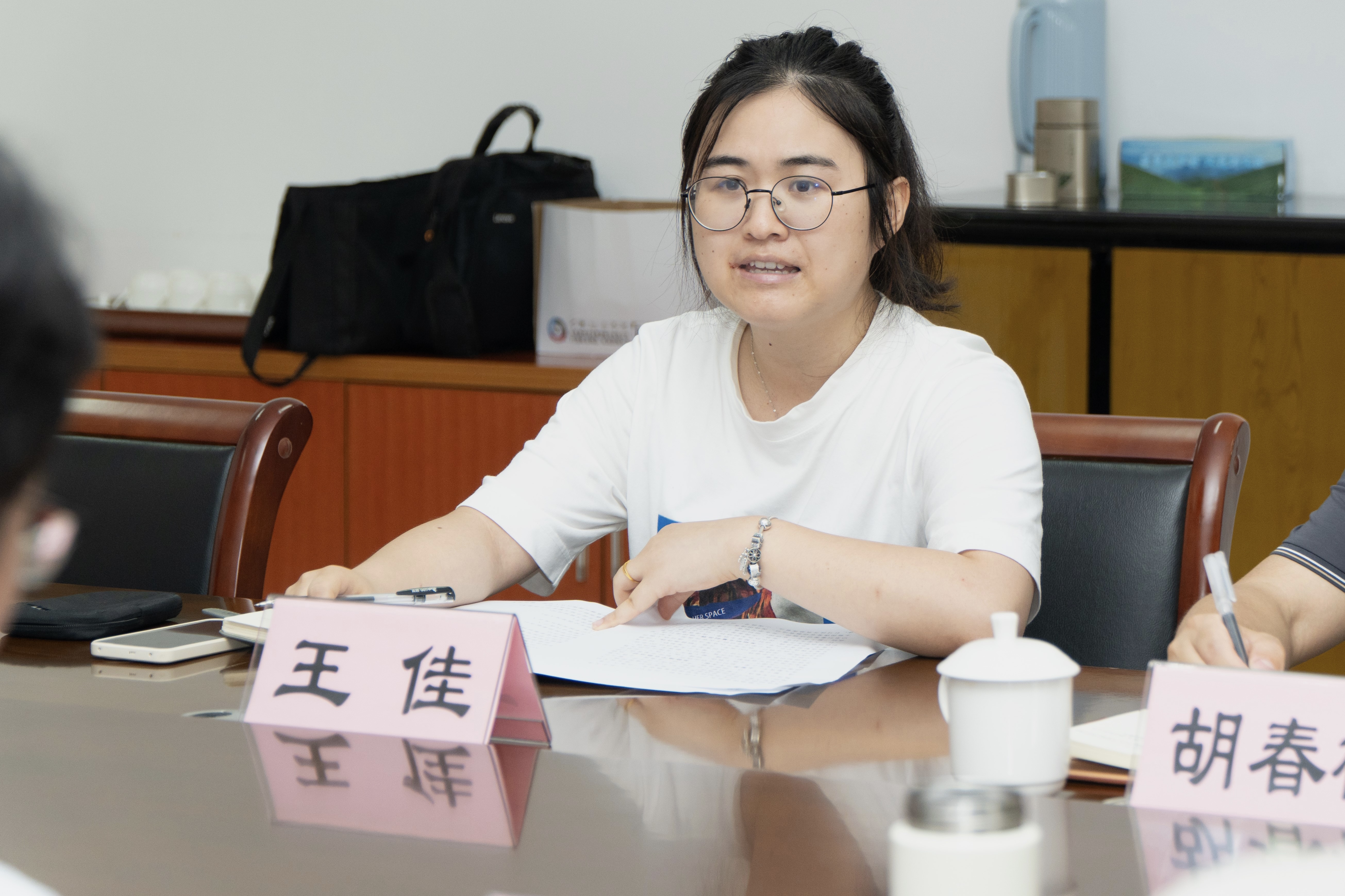 王佳介绍了大墅镇团委的基本情况。大墅镇作为大下姜乡村振兴联合体重要组成部分,着力构建“共富大下姜、大美新大墅”发展新格局,打造“墅上青年”品牌。盛雨茹介绍实践计划。她指出实践团队将从助农直播、乡村文旅、大墅风情三方面展开,发挥专业优势,走进田间地头,打造青春直播间,助力大墅镇农产品走出大山,并积极探索乡村文旅特色模式,拍摄大墅风情,助力乡村振兴。