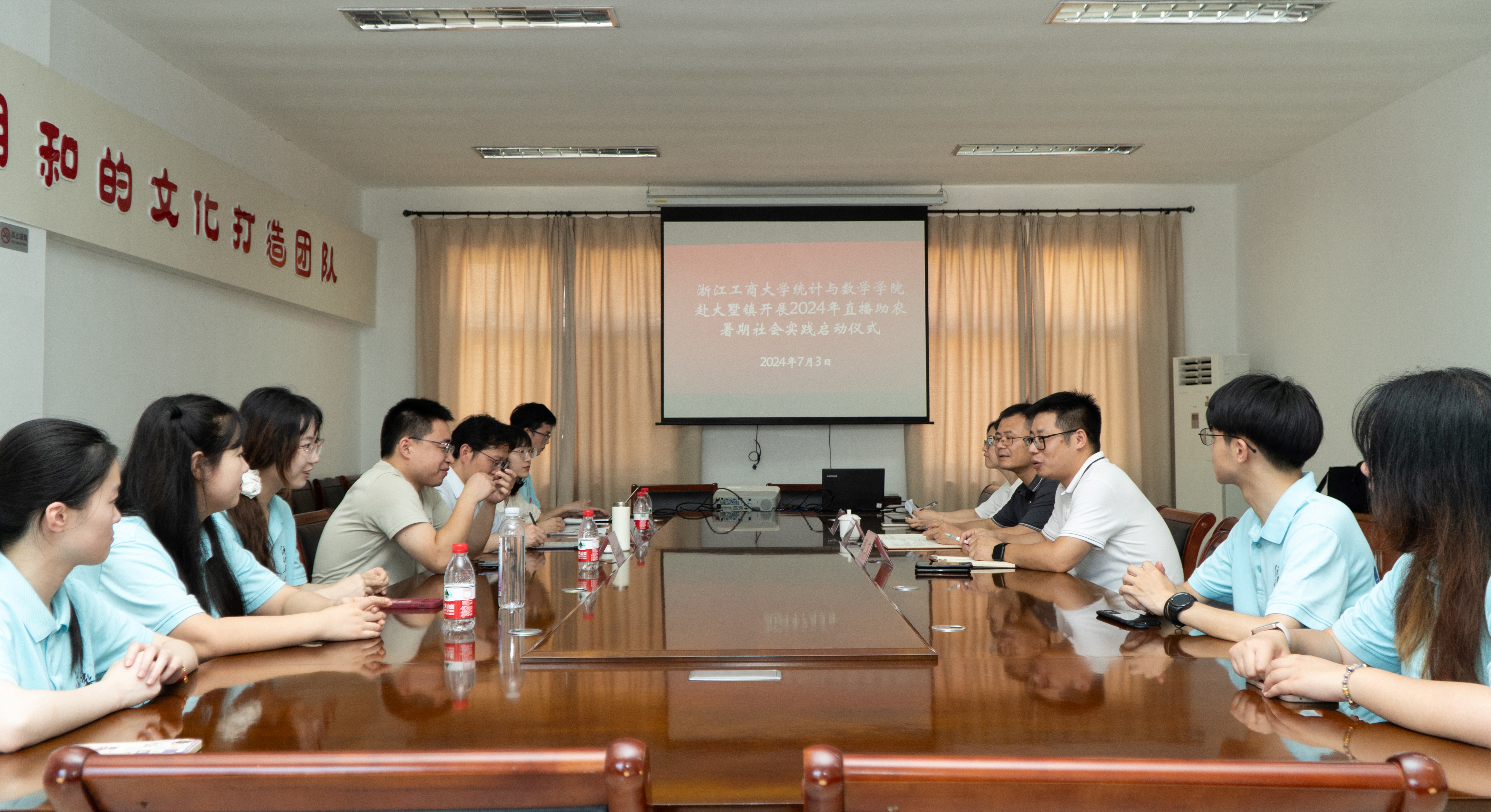 7月3日下午,统计学院“‘统’心助农,‘浙’里共富”实践队赴大墅镇开展2024年直播助农暑期社会实践启动仪式。