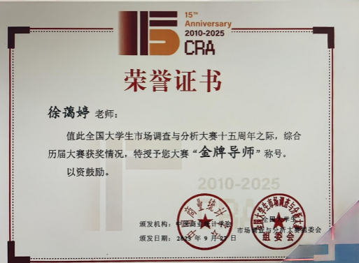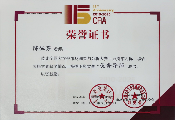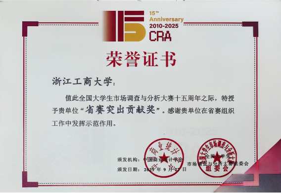 我校荣获全国大学生市场调查与分析大赛赛区“最佳组织奖”和“省赛突出贡献奖”。
