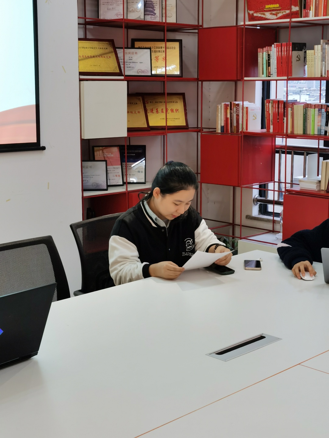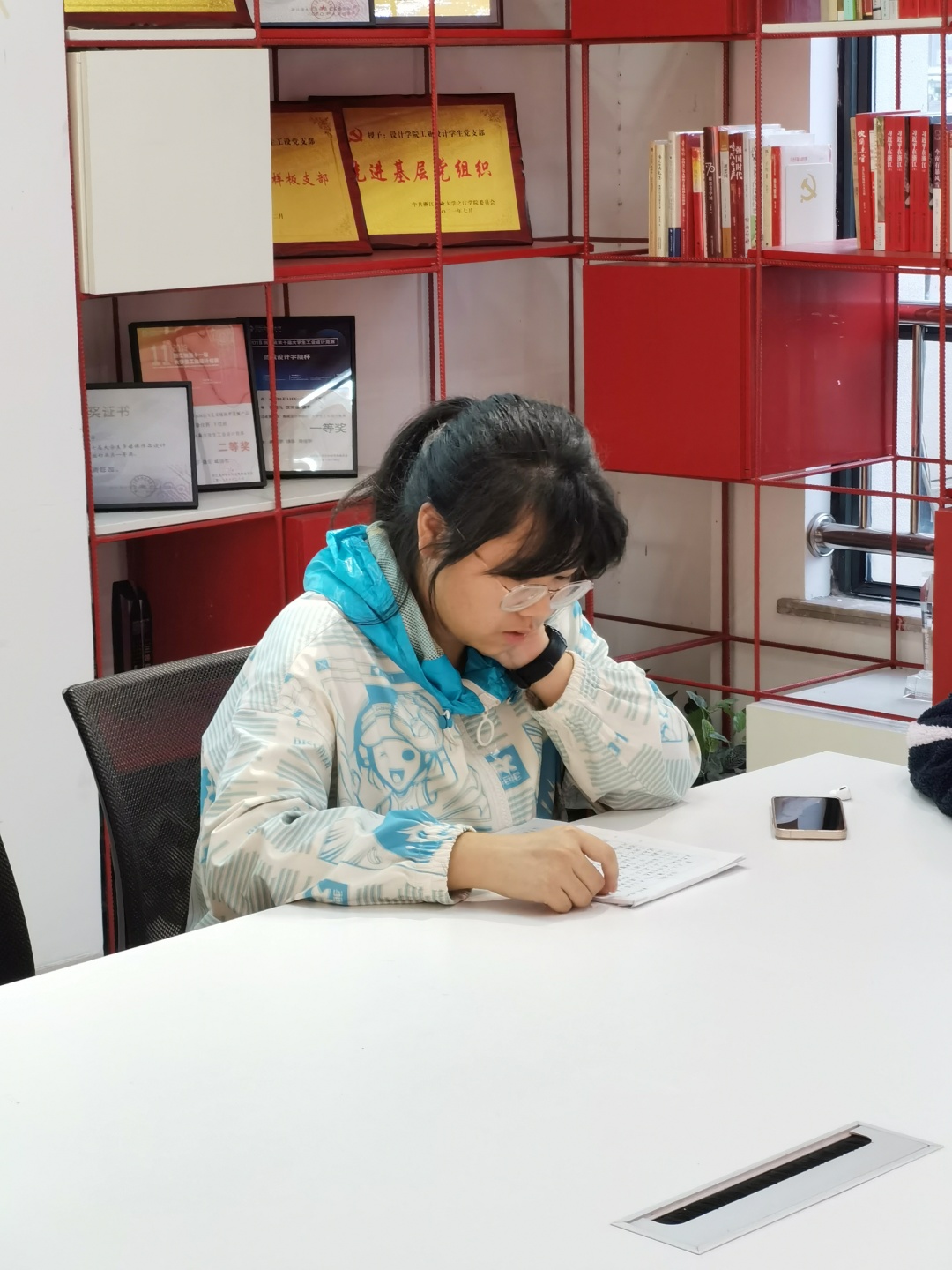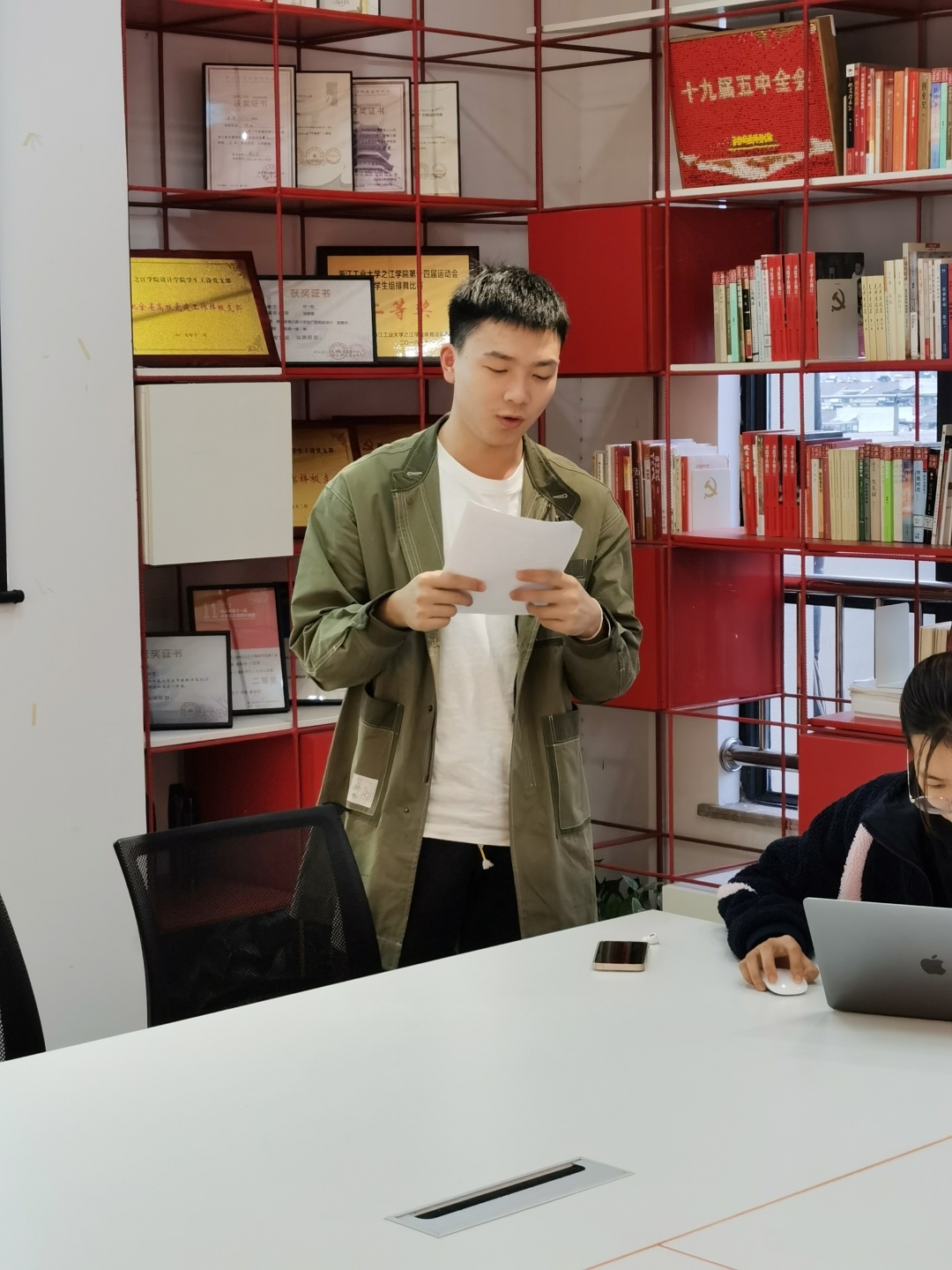活动过程二:学生工业设计党支部在行健楼六楼党员之家举行读书分享会,支部成员之间互相交流学习。支部成员说明自己推荐这本书的理由,阐明自己的切入点与党或与什么主题相关。