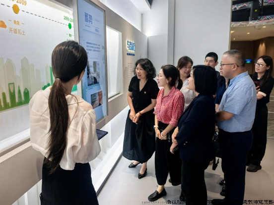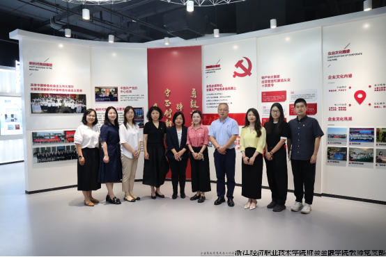 物产中大国际贸易集团有限公司党委副书记、副董事长、纪委书记葛军燕,第二党支部书记、财务部总监潘路青等企业代表对学院一行表示热烈欢迎。在葛书记的带领下首先参观了企业展厅,丰富的图文资料生动呈现了公司的发展历程、业务板块、核心优势以及在国内外市场取得的显著成就,从大宗商品贸易的全球布局到数字化贸易平台的搭建展示了企业在行业内的领先地位和强大的发展活力。