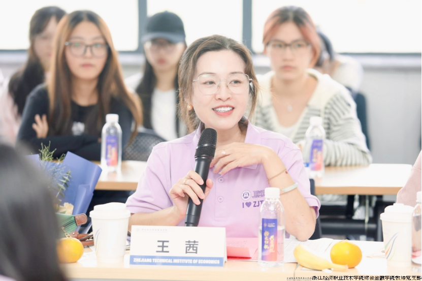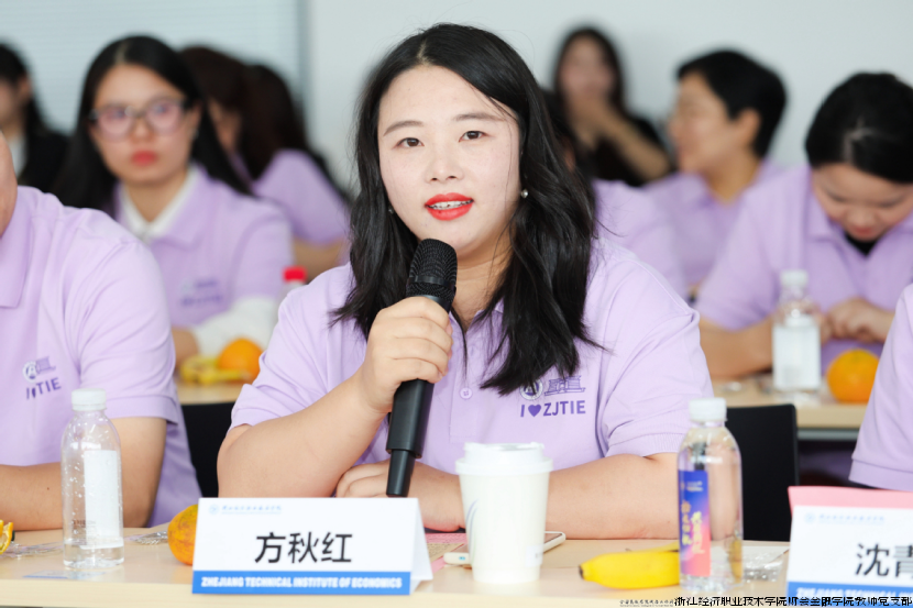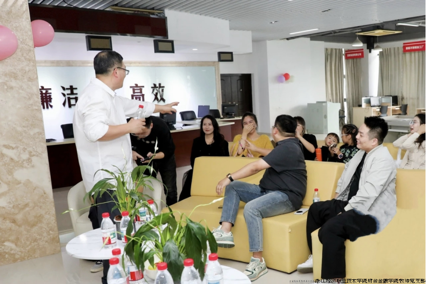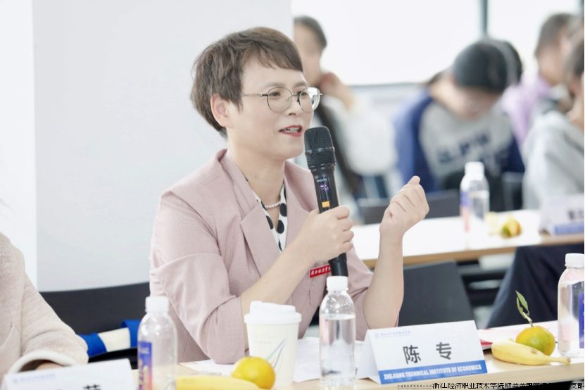 本次活动的重头戏——校友座谈会环节特邀五位杰出校友分享成长经验。2013级数字财经学院校友分会副会长、浙江极氪智能科技有限公司财务核算经理方秋红分享了财务核算方面的经验与技巧;1996级浙江原爱贸易有限公司总经理周胜亚分享了他的职场经历和心路历程;2003级浙江求德律师事务所律师沈青青以从校园到法庭的跨越为主题,讲述了法律人的职业坚守;2012级浙江高诚融资担保有限公司副总经理戴嘉文分享了金融路上的坚持与突破;2012级创市(苏州)私募基金管理有限公司总经理周浩男则畅谈投资视野下的职业规划。现场互动环节气氛热烈,在校生踊跃提问,校友专业细致的解答赢得阵阵掌声。
