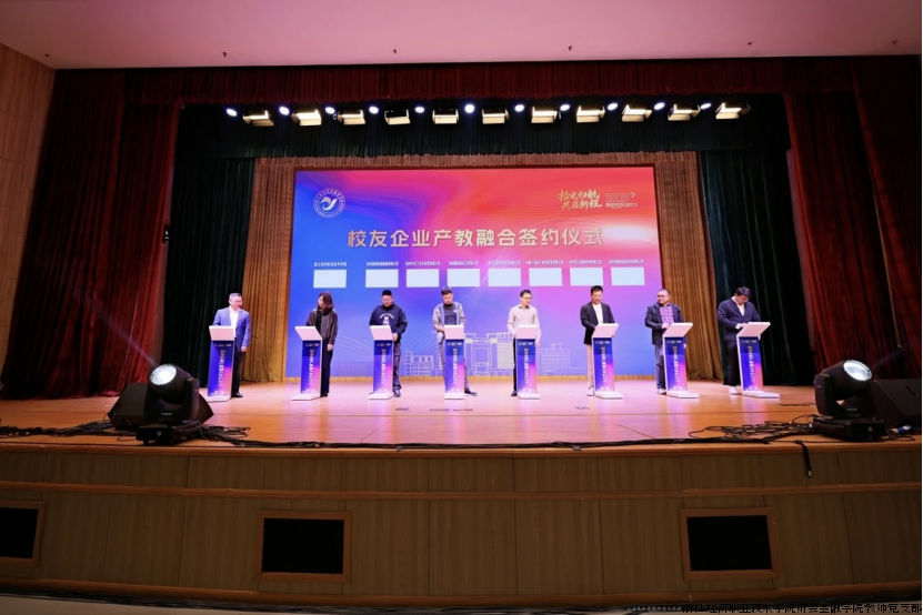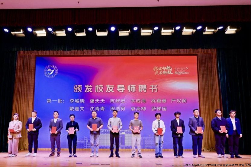 在本次学校校友返校欢迎大会上,数字财经学院校友会会长沈海俊参加校友企业产教融合签约仪式,沈青青、戴嘉文、周浩男三位优秀校友被评为校友导师。未来,他们将一如既往心系母校,与母校携手同行,共启新程!