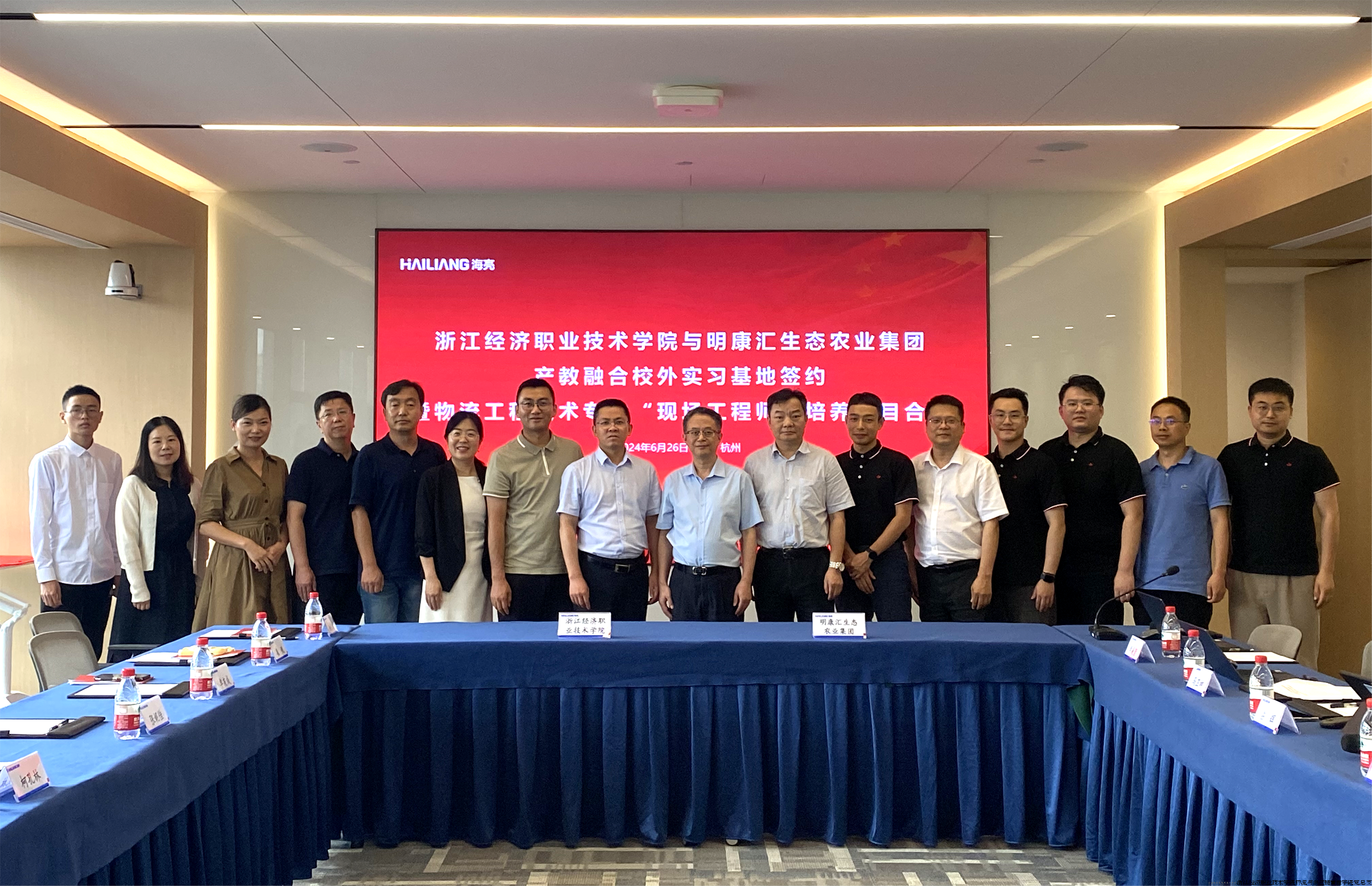 6月26日下午,浙江经济职业技术学院与世界500强海亮集团旗下明康汇生态农业集团合作的物流工程技术专业“现场工程师”项目启动暨产教融合校外实习基地签约授牌仪式在海亮科研大厦举行。