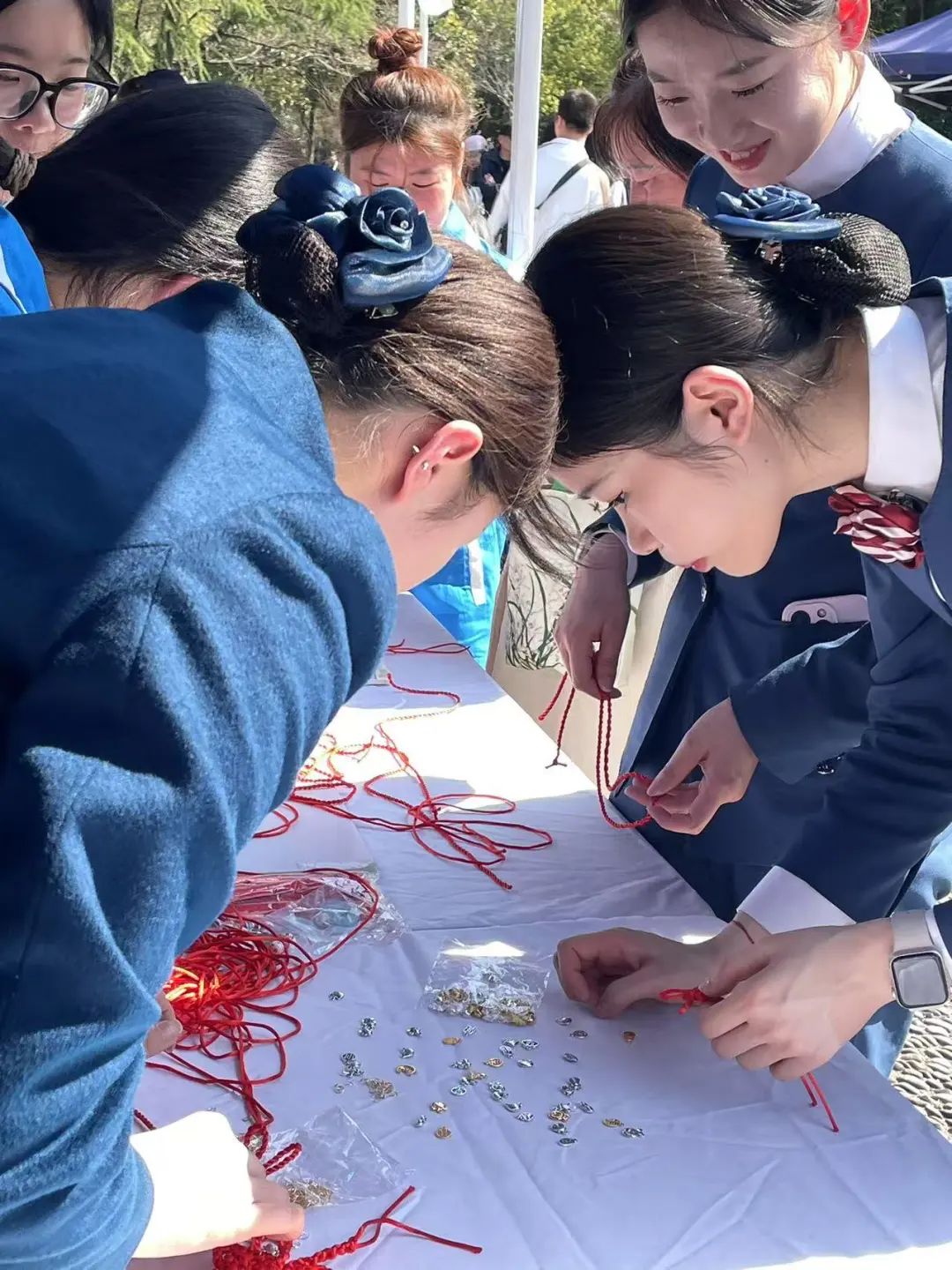 为弘扬中华优秀传统文化,丰富社区居民精神文化生活,3月21日,在大数据与会计教研室党支部老师的引导下,学院学生参与了杭港地铁进社区志愿服务,主要负责“巧手结艺坊”摊位。