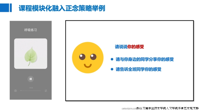 图2 课程模块化融入正念策略例1:线下带领练习与感受分享