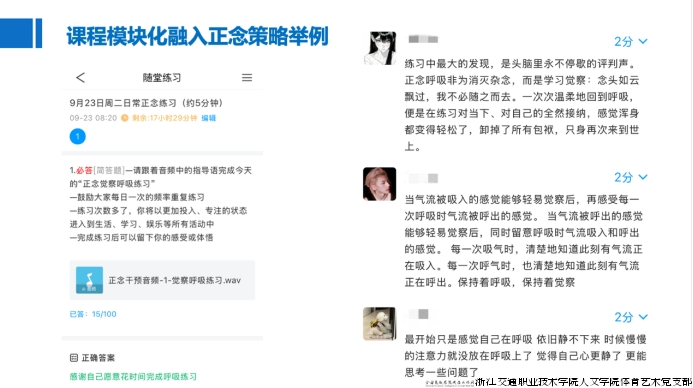 图3 课程模块化融入正念策略例2:线上练习与主题讨论