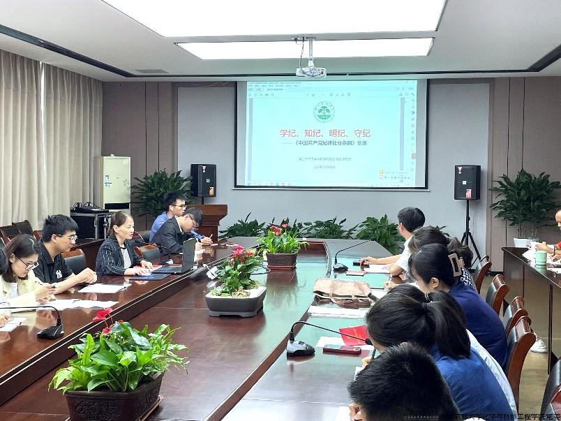 5月31日下午,浙江农林大学化学与材料工程学院党委书记谢志新以“学纪、知纪、明纪、守纪”为题在学9-306为化学学科党支部和院办综合党支部上专题党课。