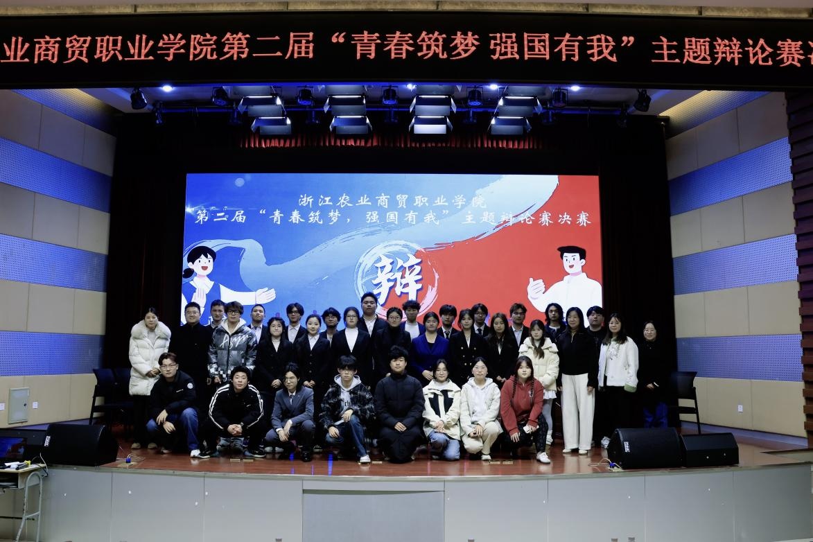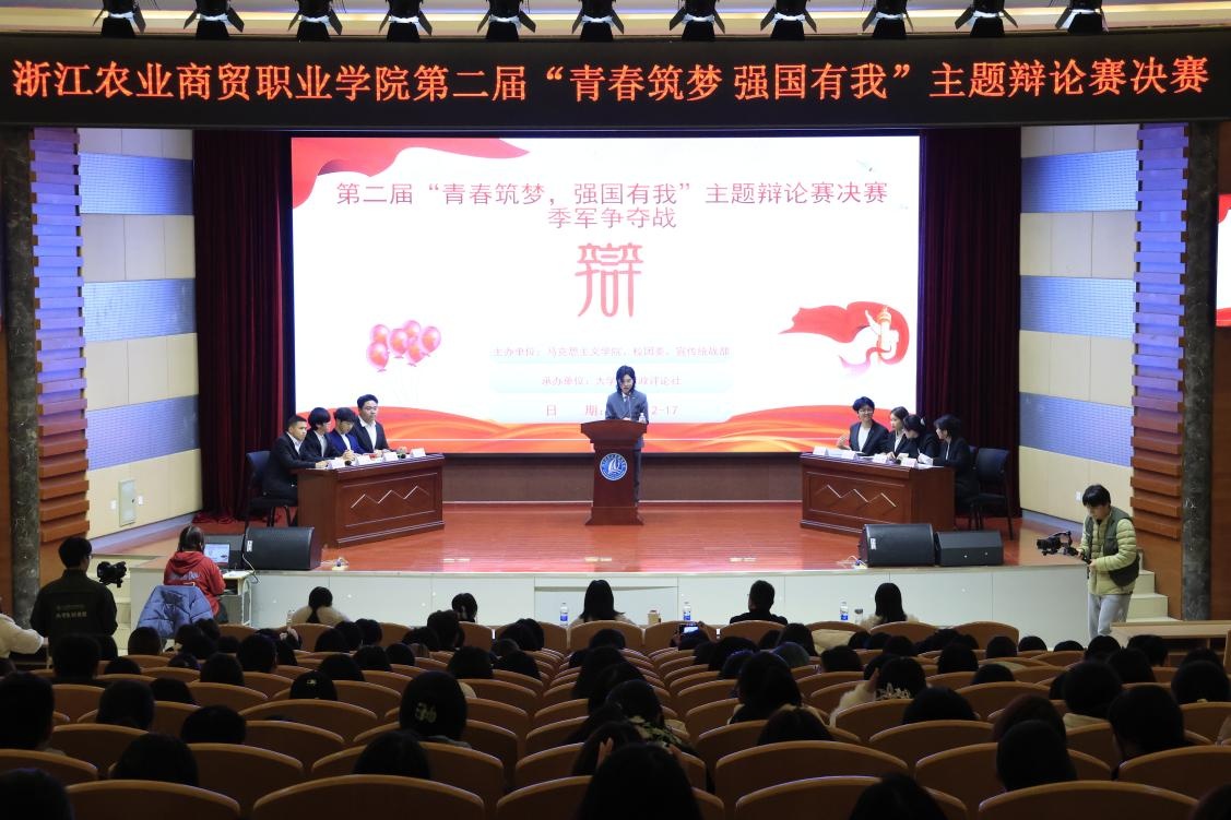 为深入学习贯彻党的二十届四中全会精神,提升学生思辨素养、语言表达与临场应变能力,引导青年学子关注社会现实、勇担时代使命,12月17日晚,浙江农业商贸职业学院第二届“青春筑梦,强国有我”主题辩论赛决赛在越城校区图书馆报告厅精彩举行。各二级学院300余名学生代表到场观摩,共同感受思想交锋的魅力。本届校辩论赛由马克思主义学院、校团委、宣传统战部联合主办,大学生时政评论社承办。