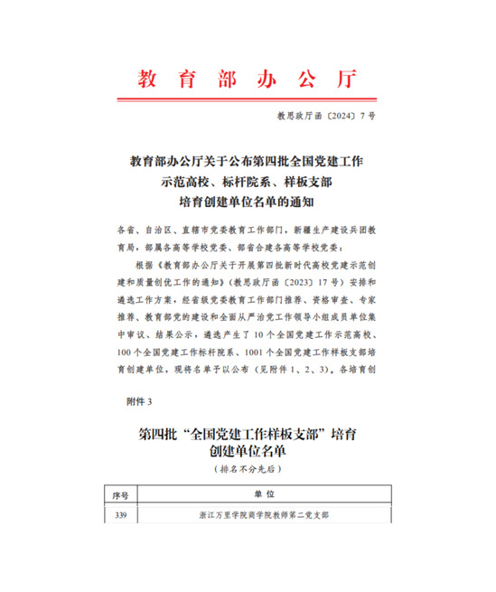 2024年4月16日,教育部办公厅公布了第四批新时代高校党建示范创建和质量创优工作遴选结果,我院教师第二党支部入选全国党建工作样板支部培育创建单位。
