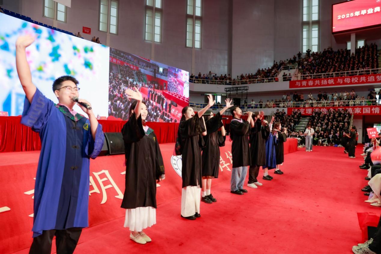 在暖场环节,毕业生们现场唱响《下一站茶山刘》《亲爱的你啊》《像你这样的朋友》等歌曲。毕业典礼在师生激昂的校歌声中圆满落幕。
