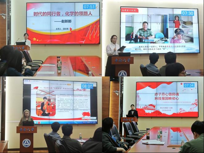 竞赛现场,14位参赛者紧扣竞赛主题,结合自身经历,精心选题。其中既有为党的事业献出生命的秋瑾、周炳文,也有中南化院人的精神丰碑和杰出代表陈新民、赵新那……一个个鲜活生动的案例娓娓道来,一幕幕感人肺腑的场景徐徐展开,选手们用精彩的讲述和动人的情感带来了一堂堂精彩纷呈的微党课。