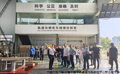 首先,鲁寨军带领来宾参观了轨道交通安全实验室,向来宾详细介绍了实验室自主研发的时速500-600公里等级高速轮轨/磁浮列车气动特性动模型试验平台、客室环境保障试验平台、轨道车辆实车碰撞试验平台等,讲述了列车气动外形设计、列车交会、车隧耦合、吸能结构设计等技术研发过程,现场还展示了高速列车动模型弹射试验。