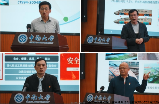 学术交融,共筑科技强国梦。随后,活动转入学术交流环节,在中南大学天心校区大学生科技文化中心举行,200余师生参加。中车青岛四方机车车辆股份有限公司与中南大学交通运输工程学院的专家学者围绕轨道交通发展历史及关键技术展开4场学术报告。中南大学梁习锋教授以《风雨兼程30年,与中国铁路共辉煌》为题,回顾了中国铁路发展的辉煌历程以及中南大学高速列车研究中心服务中国铁路发展的成长经历;中车青岛四方机车车辆股份有限公司刘加利、王晖、赵士忠分别就轨道车辆空气动力学、轨道交通司乘人员碰撞伤害评估、动车组异物碰撞安全等前沿技术进行深入研讨。这些报告不仅展示了我国在轨道交通领域的科研实力,也为双方后续进一步技术合作指明了方向。该活动由极端流动力能前沿科学中心副主任、交通运输工程学院博士研究生第一党支部书记王中钢主持。