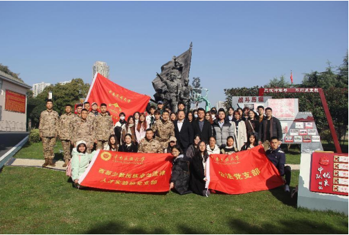 本次活动是湖北省高校“双带头人”党支部书记工作室--公法党支部,全国党建工作“样板党支部”--西部卓越法治人才实验班党支部与武警湖北总队执勤支队某中队党支部的党建共建主题活动,旨在进一步学习军史军貌、培植爱国情怀、提升党性素养。