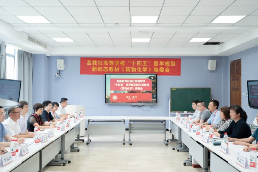 2023年7月22日,高教社高等学校“十四五”医学规划新形态教材《药物化学》编委会第一次会议在温州医科大学召开,药学系党员老师王强作为学校代表应邀参加了此次会议。会上,各编委就教材内容进行了细致讨论,对实验教学中遇到的各种实际问题进行了深入探讨,确定了高教社高等学校“十四五”医学规划新形态教材《药物化学》第一版教材的编写规划和分工,我校负责承担“抗病毒”章节药物纸版教材和线上同步教材的编写与修订工作。