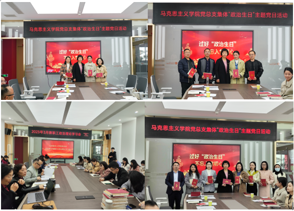 会后,马克思主义学院党总支开展了集体过“政治生日”主题党日活动,为过政治生日的党员发放了贺卡,赠送了礼物。各位党员纷纷表示,感谢党组织的关心关爱,一定不辱使命,学好用好教好马克思主义理论,用心用情讲好思想政治理论课,不断培育好学生,持续献计献良策。