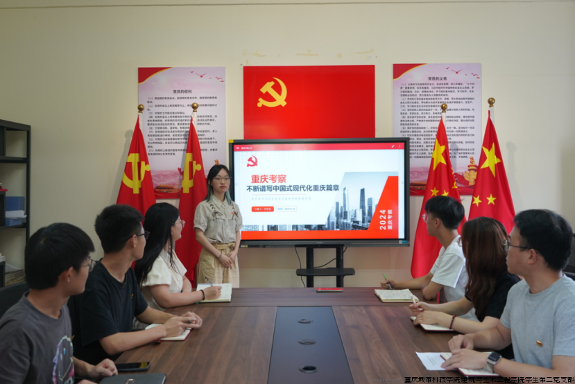 最后,支部副书记魏姗姗总结道:“首先,此次分享让我们更加直观了解到习近平总书记重庆考察的内容以及相关重要讲话精神,其次,重庆作为西部发展的腹地,我们应该加强自身的专业建设,抓住时代红利,在相关领域绽放风采,最后,希望大家坚定自身政治立场,切勿思想滑坡,要尽己所能参加各项活动,提升党员素养和综合素质能力。”