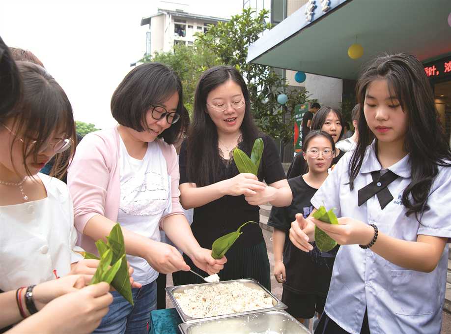 师生在学生社区一起包粽子体味端午文化 |