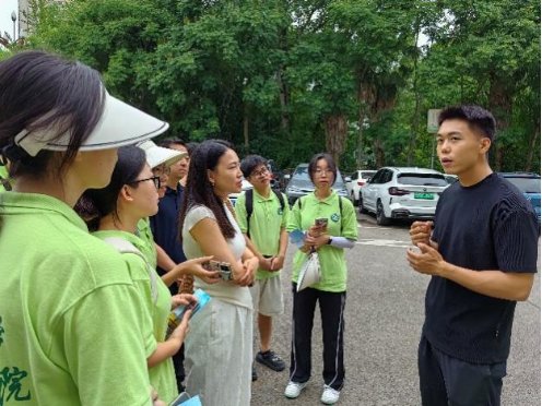 和平村党支部书记邱志洪向实践队详细分享了村庄“稻田+”产业发展规划及农夫夜市、康养基地等旅游项目设计思路。和平村党支部副书记刘燕则带领队员们实地踏勘情侣桥、观景台等景点,结合生态步道、彩色稻田等实景,描绘“农文旅融合”的立体画卷。惜字阁村党支部副书记姜捷恒以姜家大院为切入点,讲述了大足石刻技艺的传承脉络,带领团队领略姜氏石刻艺术,让学子们近距离感受非物质文化遗产的魅力。探访海棠林时,姜捷恒结合满树红果与百年古树交织的景致,介绍了海棠文化的渊源与产业转化路径。